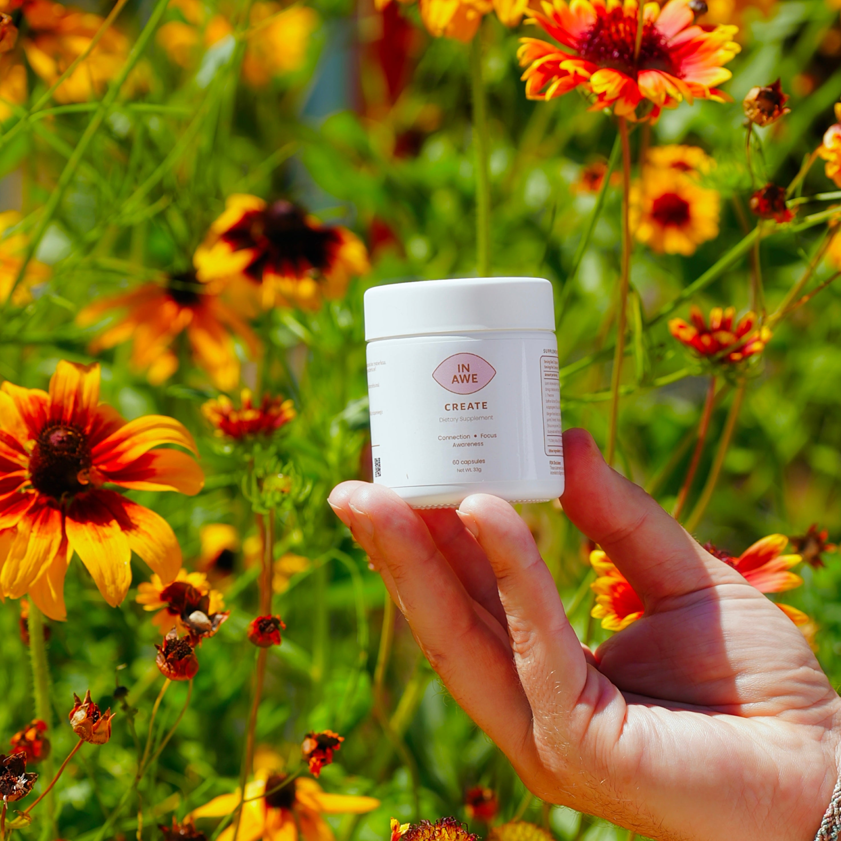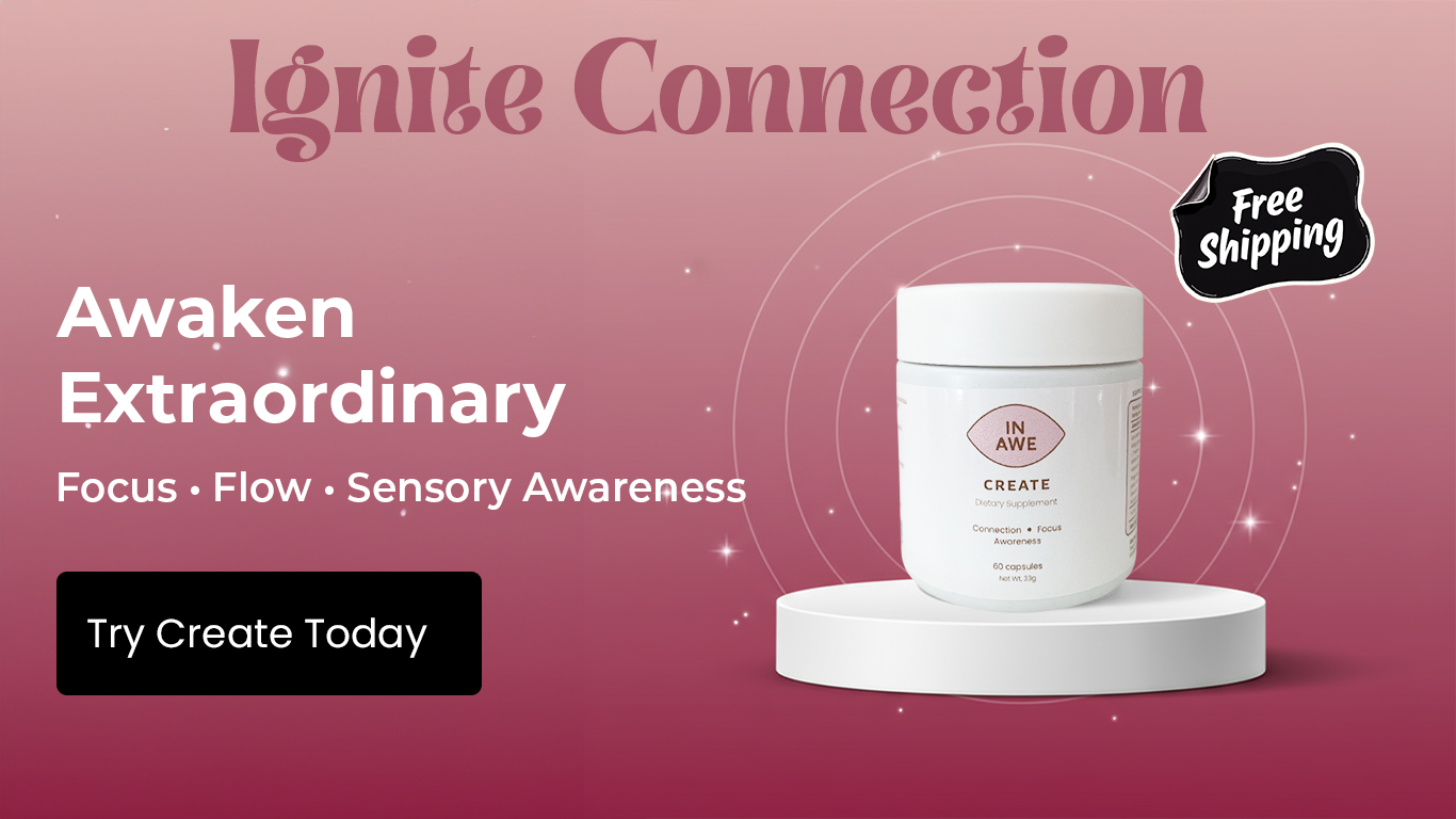 In Awe introduces Create, a blend of sacred botanicals crafted to awaken wonder, ignite connection, and discover the extraordinary. This isn’t just a supplement, Its a state of enhanced mental endurance, an ally designed to help you step outside the ordinary and into a state of possibility.