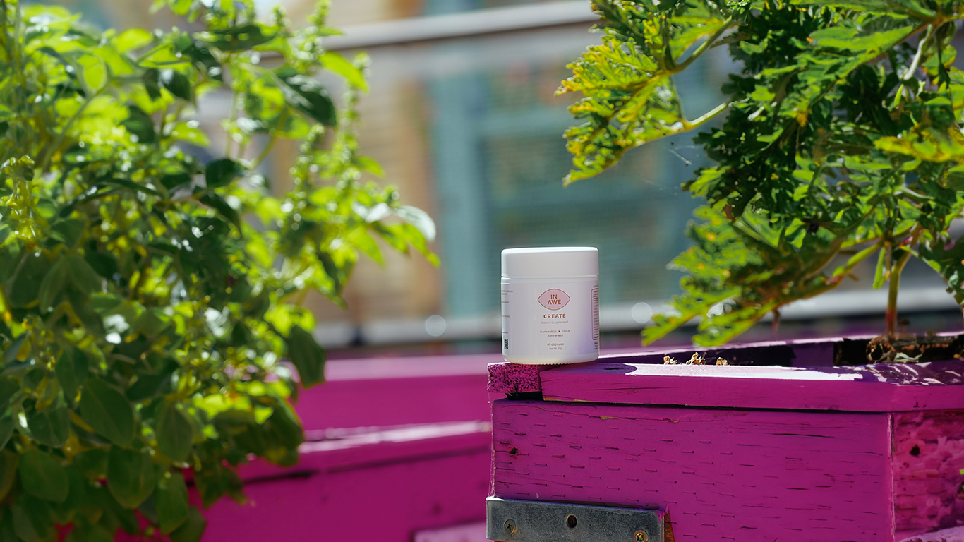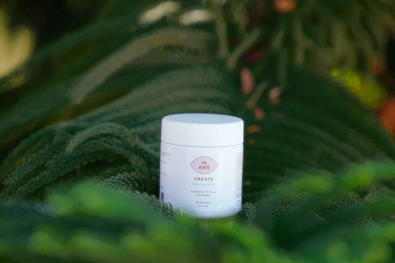 In Awe presents Create, a blend of sacred botanicals. It's not just a supplement; it's a state of enhanced mental endurance. This ally helps you step beyond the ordinary into possibilities. Perfect for creators, seekers, and soul-expanders, Create offers a grounding yet transcendent experience. 🌿✨